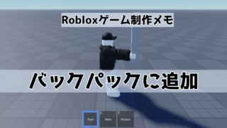 Robloxでバックパックにアイテム(ツール)を追加するメモです。Robloxはデフォルトでバックパック(持ち物リスト)が用意されており簡単にアイテムをバックパックに追加することが出来ます。