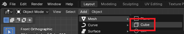 「Add」→「Mesh」→「Cube」を追加します。
