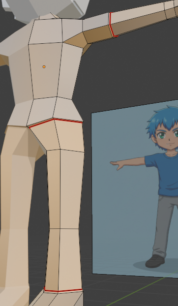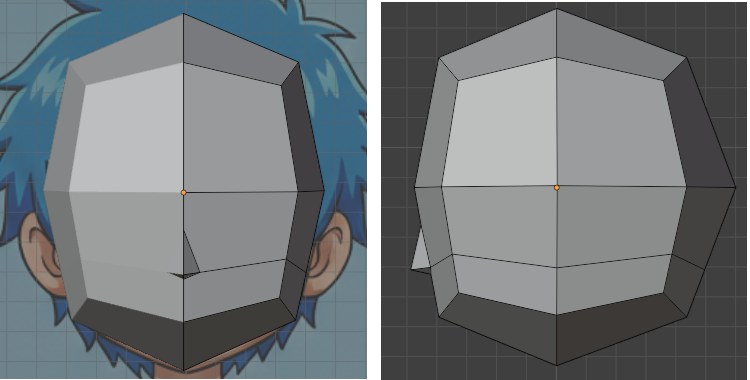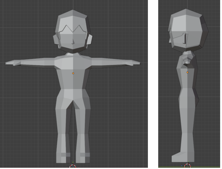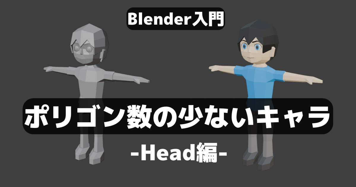 人物風キャラクターの頭部をローポリゴンで作成していきます。下記の体部分の作成の続きです。