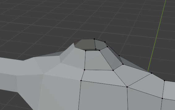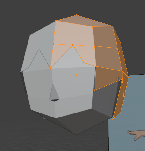 押し出し(キーボードのE)、頂点の移動(キーボードのG)を行い、耳の形にします。
