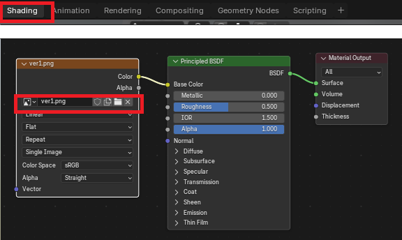 ShadingタブでImageTextureを追加して作成したカラーパレット画像を参照します。