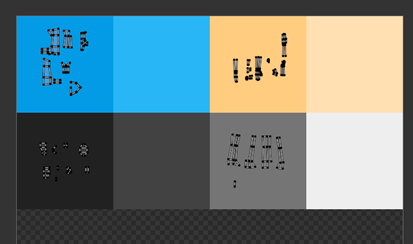 下記のような感じに色をつけることが出来ます。体部分だけであれば再利用性やファイルサイズを考えるとシンプルなカラーパレットで十分です。
