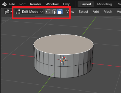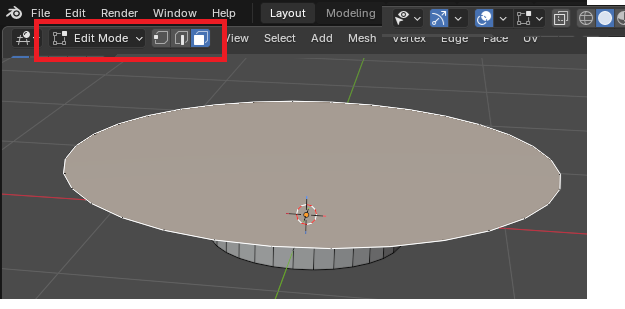「EditMode(編集モード)」で面選択モードに変更、上面を選択してキーボードのEキーで上に押し出します。