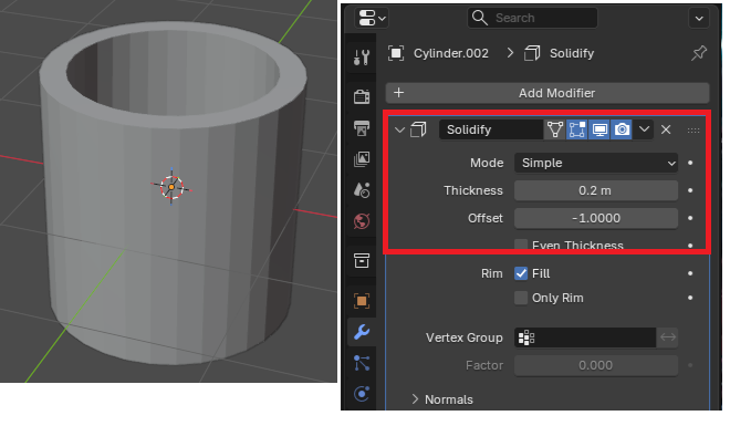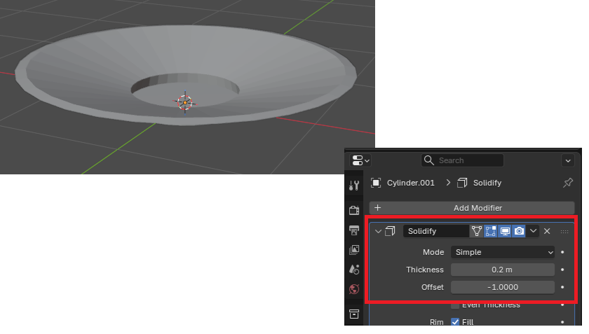 画面右プロパティ内の「モディファイアープロパティ」から「AddModifier(モディファイアーを追加)」を選択して、「Solidift(ソリッド化)」を追加します。