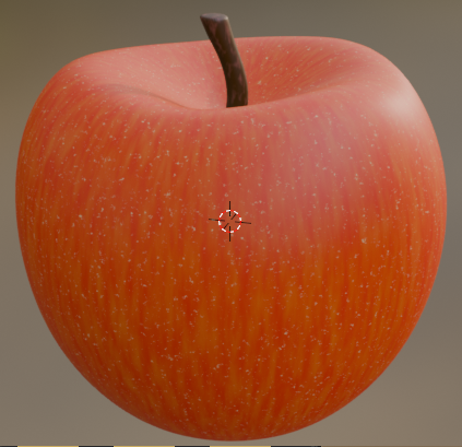 まずはベイクするオブジェクトを用意します。前回作成したリンゴを利用していきます。ノイズテクスチャノードを利用して表面の色をセットしています。