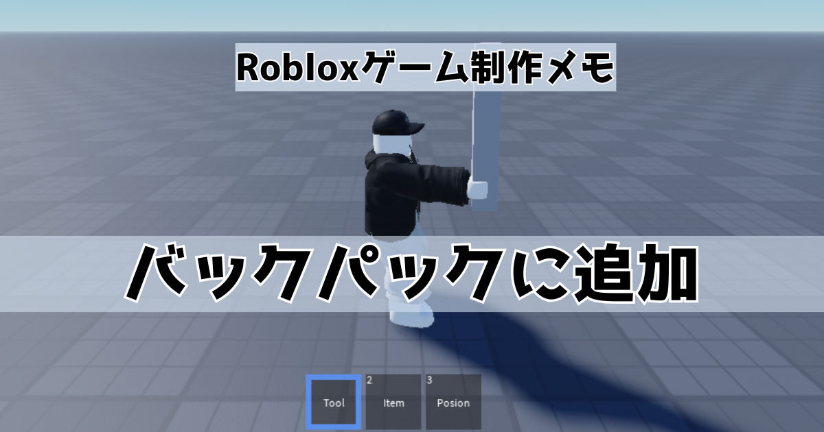 RobloxStudioで「持ち物リスト(Backpack)」にアイテム(ツール)を追加するメモになります。