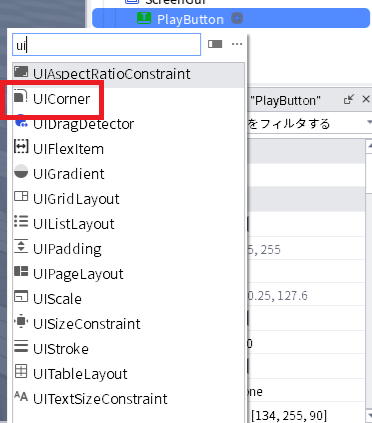 ボタン感を付けていきます。ボタン配下に「UICorner」を追加します。
