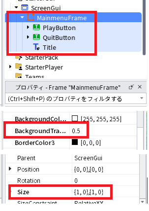 RobloxStudioで「簡単なメニュー画面(簡単なGUI)」の作成メモになります。