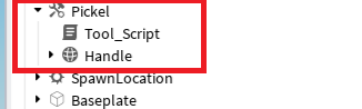 下記にてRobloxStudioでバックパックにアイテム追加を行いました。今回は、ピッケルで土台を壊すのを簡単に作成していきます。