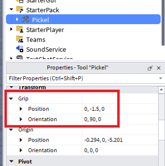 ピッケルの位置がずれている場合はGripを変更して位置を調節します。