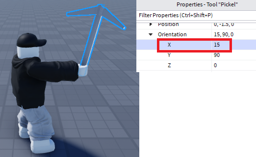 ピッケルを少し斜めにしたい場合は下記のような感じ。