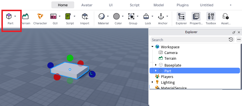 「Part」を追加します。大きさなどは適当でOK。