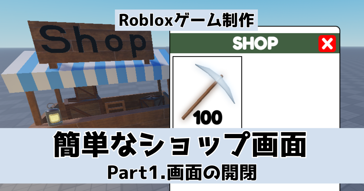 RobloxStudioで「簡単なお店(Shop)」の作成メモになります。Part1ではお店の画面を開く/閉じるまでを実装していきます。