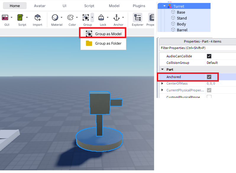 RobloxStudioで固定式のタレットを簡単に作成するメモになります。弾を発射する基本的な仕組みの確認にもなります。