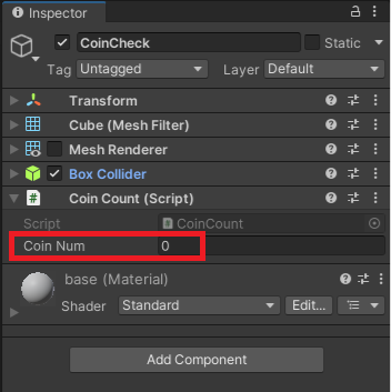 スクリプトを追加して、コインが落ちたときにカウントアップされたらOKです。